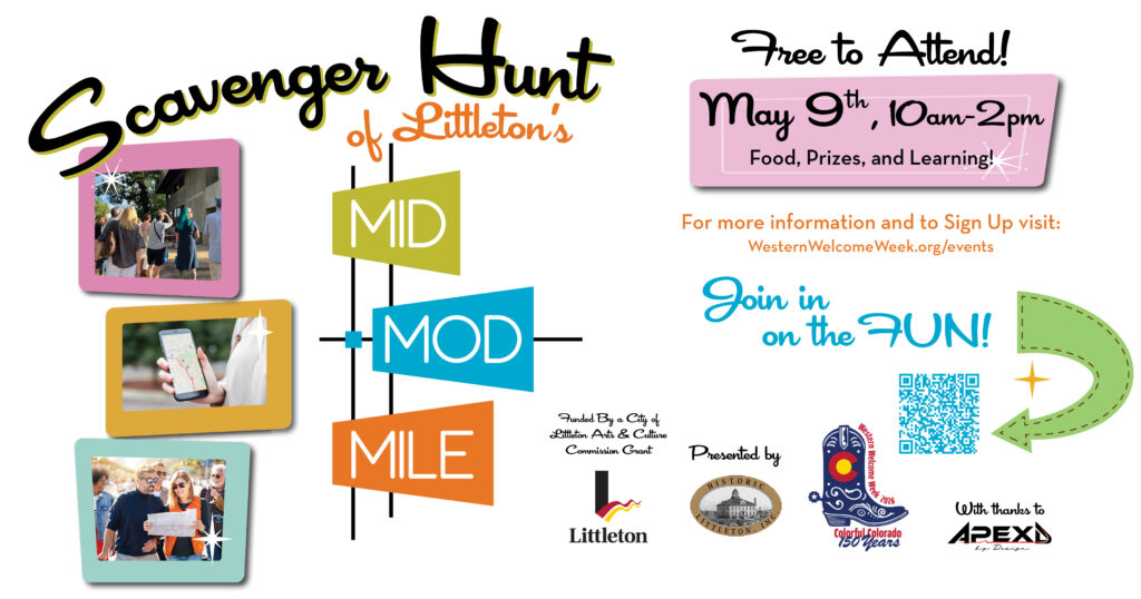 Littleton Boulevard is a treasure of architecture ranging from late 1800s to present day. There are over 80 Mid-Century Modern (Mid Mod) buildings located on or near Littleton Blvd in between Santa Fe and Broadway, many of which were designed by some of Colorado’s most notable 20th century modern architects. This area has become known as the “Mid Mod Mile.” At the Scavenger Hunt learn more about what makes these buildings significant, fun and part of Littleton’s history!
